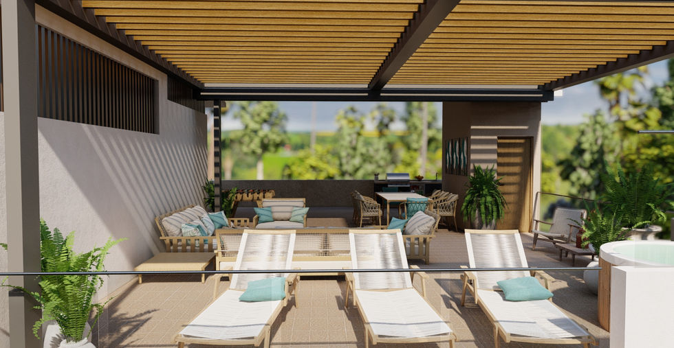 Si buscas un espacio aún más exclusivo, los apartamentos en el tercer piso incluyen una azotea semicubierta, equipada con cocina y baño, creando un área privada perfecta para disfrutar momentos de relax.